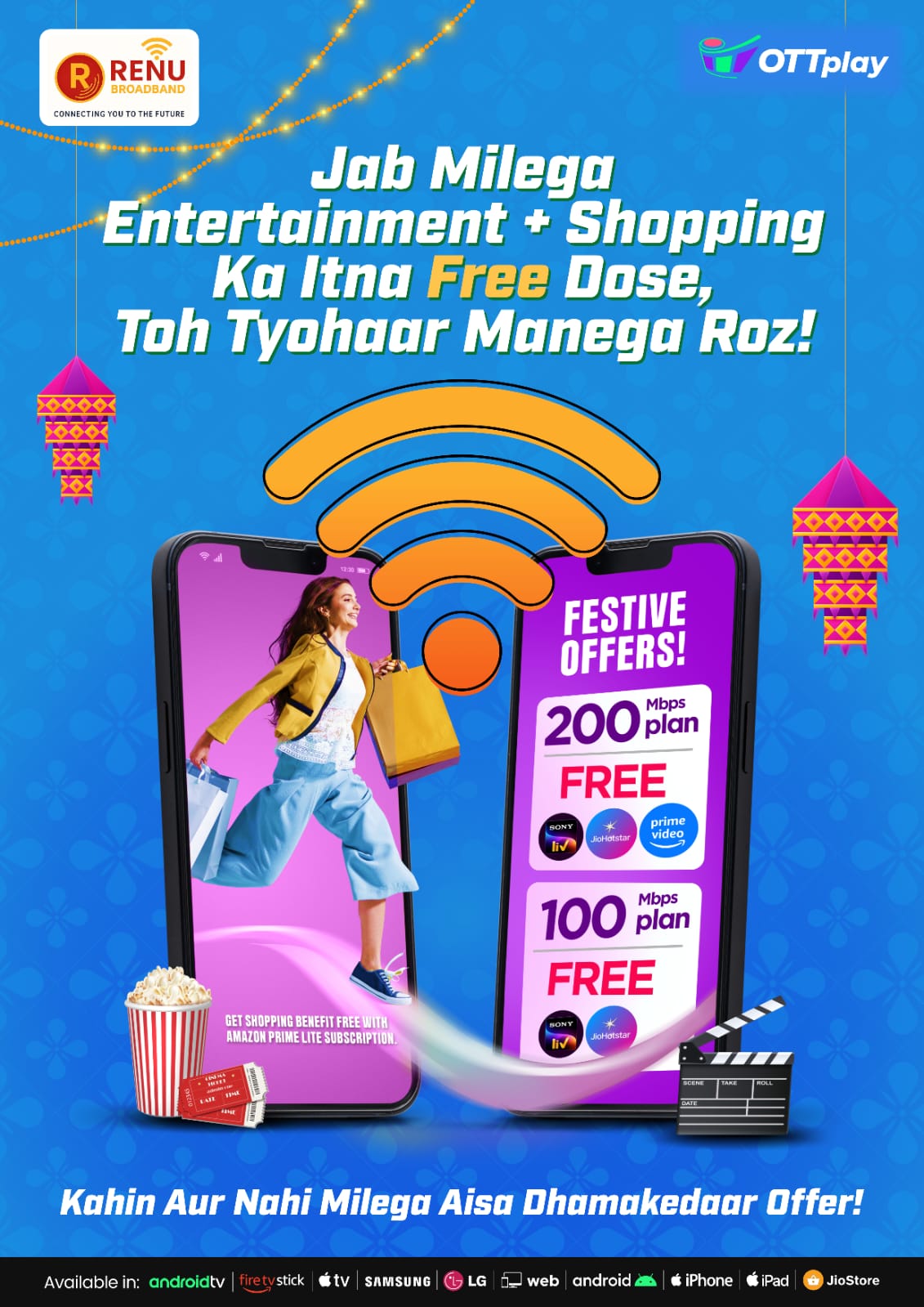 Renu Broadband is one of the few companies along with the large telcos capable of offering Triple Play services. This means, through one connection customers can access broadband, watch TV through internet and watch OTT videos. Renu Broadband offers these services to individual customers in their residences.